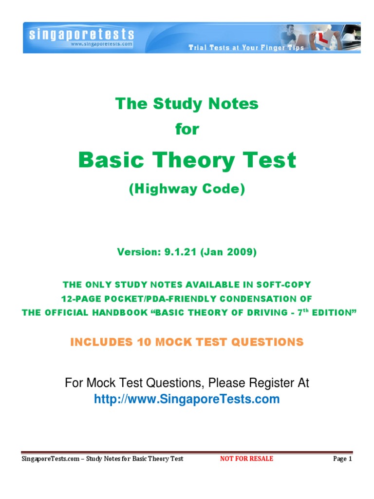 Basic theory test singapore book pdf. The Final Theory Test FTT or the Riding Theory Test RTT. Practice driving and at the same time study for the Final Theory Test FTT 6. 205 Ubi Ave 4 Singapore.