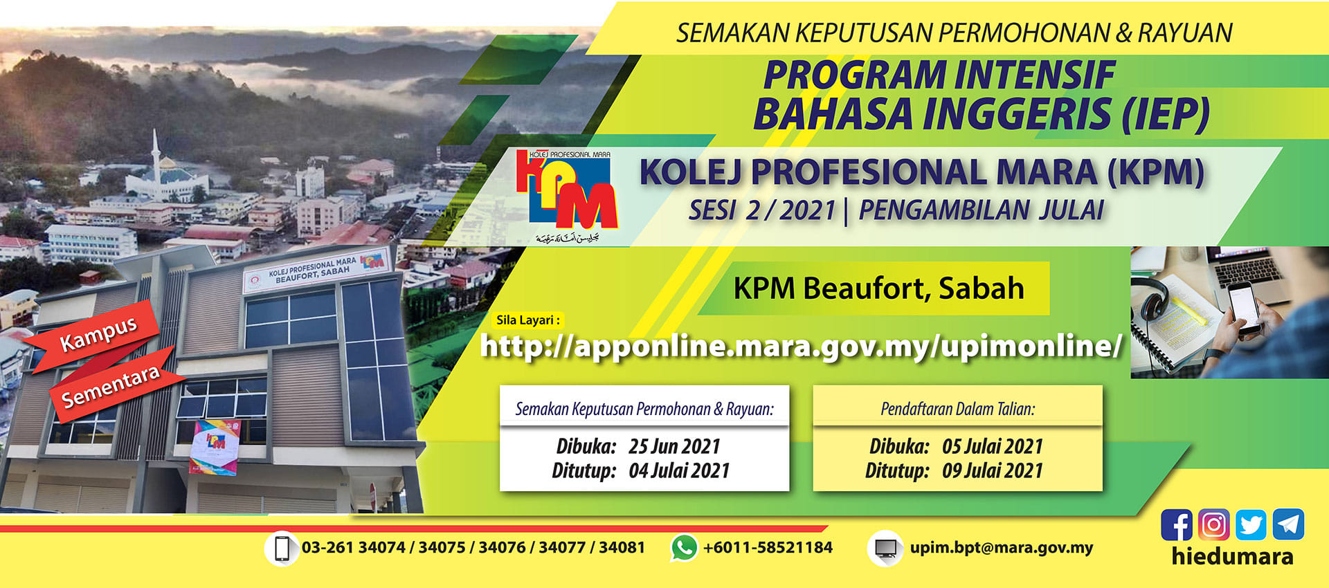 Kami buka permohonan untuk sesi pengajian Mei 2021 ke KKTM MJII IKM dari sekarang sehingga 30 April 2021 boleh mohon menerusi httpsapponlinemaragovmyspupim Rujuk kelayakan program yang dimohon bagi mengelakkan permohonan tidak. Sila daftar sebagai pengguna baru untuk memohon. 100 petang - 200 petang Isnin - Khamis 1215 thari - 245 petang Jumaat Address.