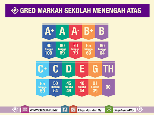 Markah dari cemerlang hingga TH seperti berikut -80 100. Julat Gred Menengah Atas MA 2016. Gred Pemarkahan 2015.