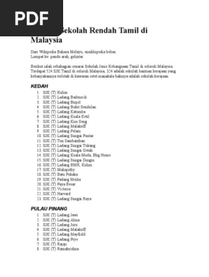 Semua sekolah Tamil adalah sekolah persendirian tanpa bantuan kewangan British. Senarai Sekolah Rendah Dan Menengah Mengikut Negeri 31 MEI 2019 3. Ini adalah senarai sekolah rendah jenis kebangsaan Tamil Bahasa Melayu.