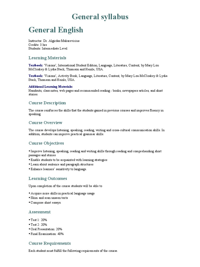 Pdf Telecharger English Course Syllabus For Intermediate Pdf Gratuit Pdf Pdfprof Com