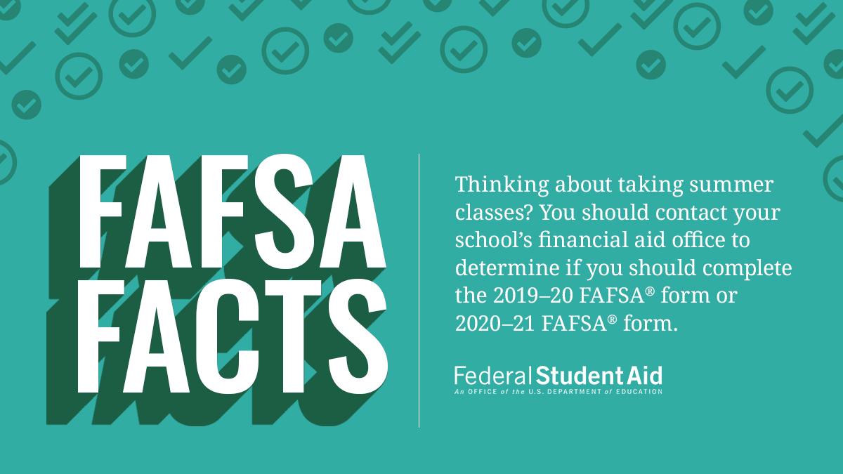 Federal Student Aid. Summer Aid Application Summer Financial Aid Information Must complete a summer aid application in AccessPlus under the Financial Aid menu after registering for summer classes Must file the 2020-2021 FAFSA at StudentAidgov by June 30 2021 to be considered for summer financial aid. The only way to qualify for federal financial aid is by completing the Free Application for Federal Student Aid FAFSA.
