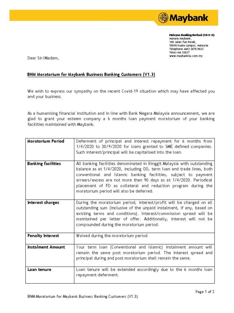 Bnm Moratorium For Maybank Business Banking Customers V1 3 Pdf Interest Loans